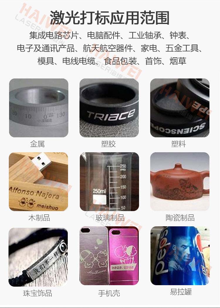5、加工速度快:加工速度是傳統(tǒng)激光打標(biāo)機(jī)的3倍以上。